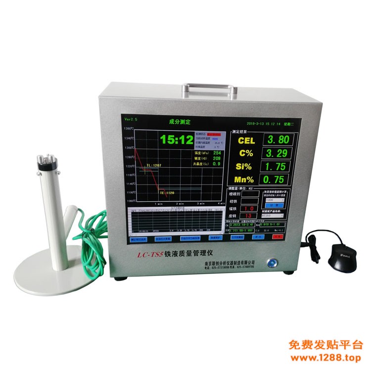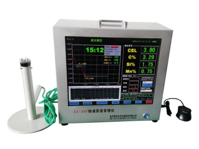 LC-TS5型炉前铁水成分测定仪是我公司生产的性能稳定,测量精度高的新一代炉前铁水管理仪器,它通过铁水组织在样杯中的温度随时间变化的冷却曲线,实时快速准确地捕获到大量铁水凝固的热效应信息,通过一系列复杂的数据处理,迅速准确地测定出铁水中的含碳量,含硅量,碳当量,抗拉强度,初晶温度,共晶温度。